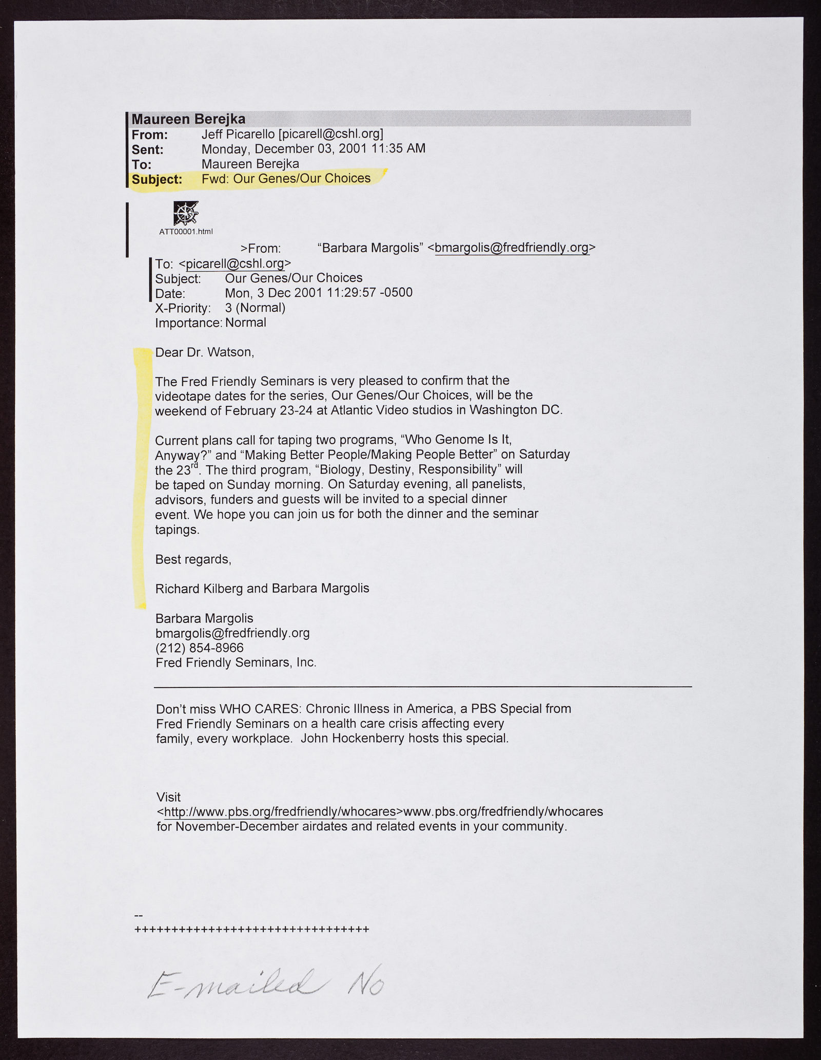 Printed e-mail message from Richard Kilberg and Barbara Margolis to James D. Watson