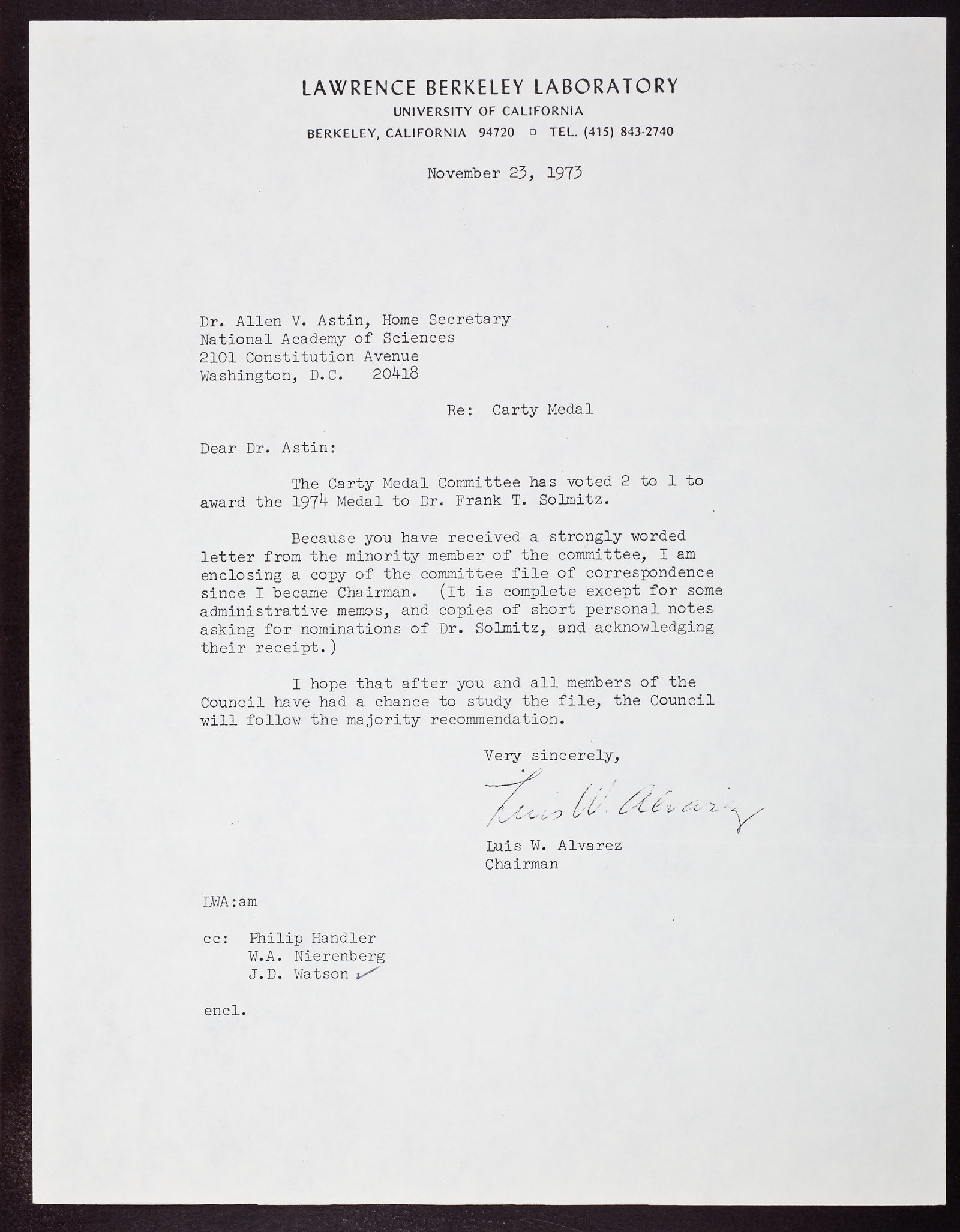 Letter from Luis W. Alvarez to Allen V. Astin