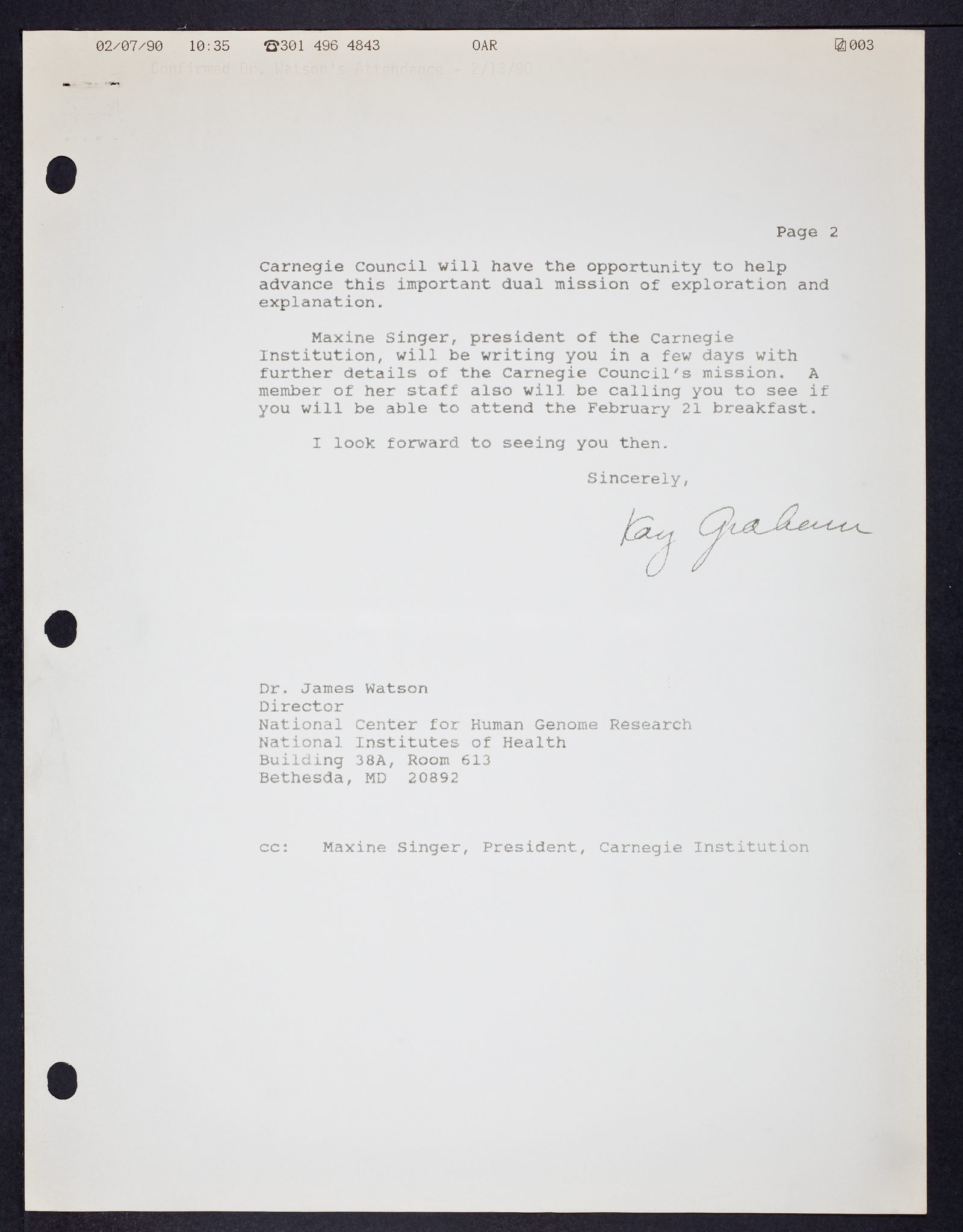 Carnegie Institute of Washington (21 February 1990)
