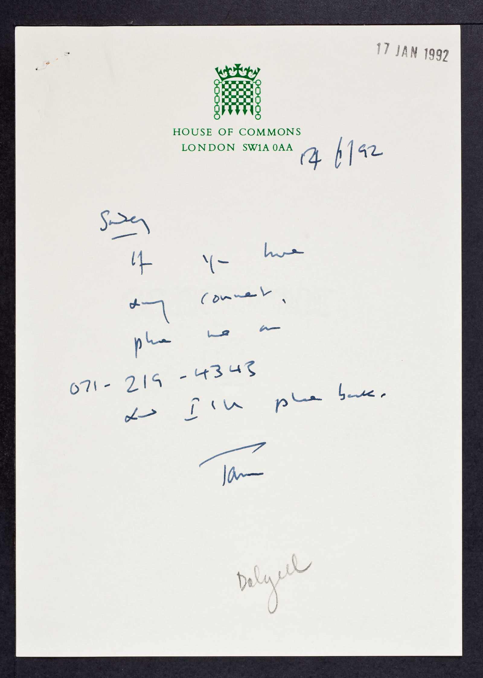 Handwritten letter from Tam Dalyell to Sydney Brenner