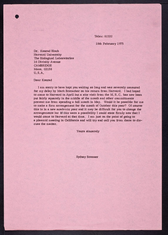 Item SB/1/1/256: Harvard University - Dept. of Biochemistry and Molecular Biology (Includes Konrad Bloch, Paul Doty, Matt Meselson, and Mark Ptashne) (1974-1975)