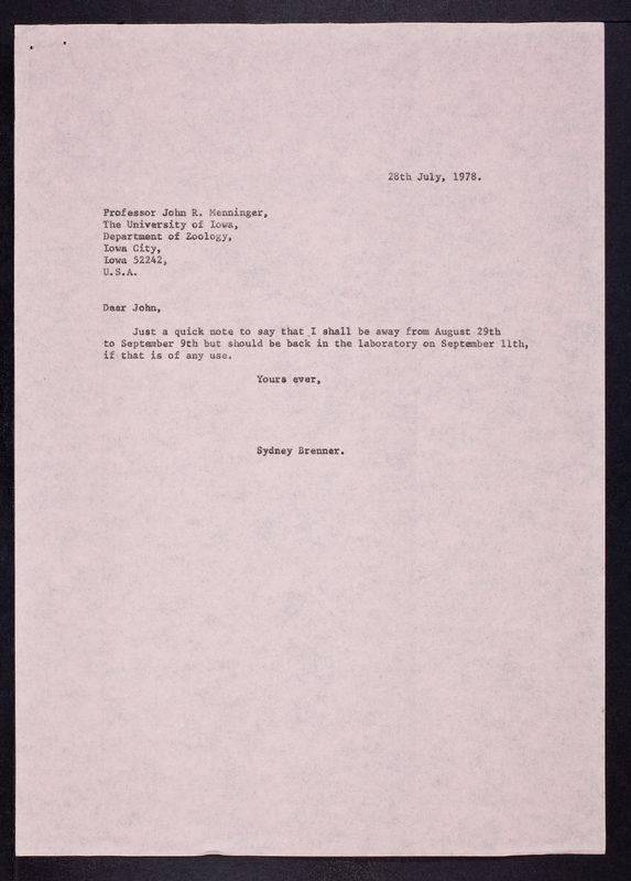 Letter from Sydney Brenner to John R. Menninger