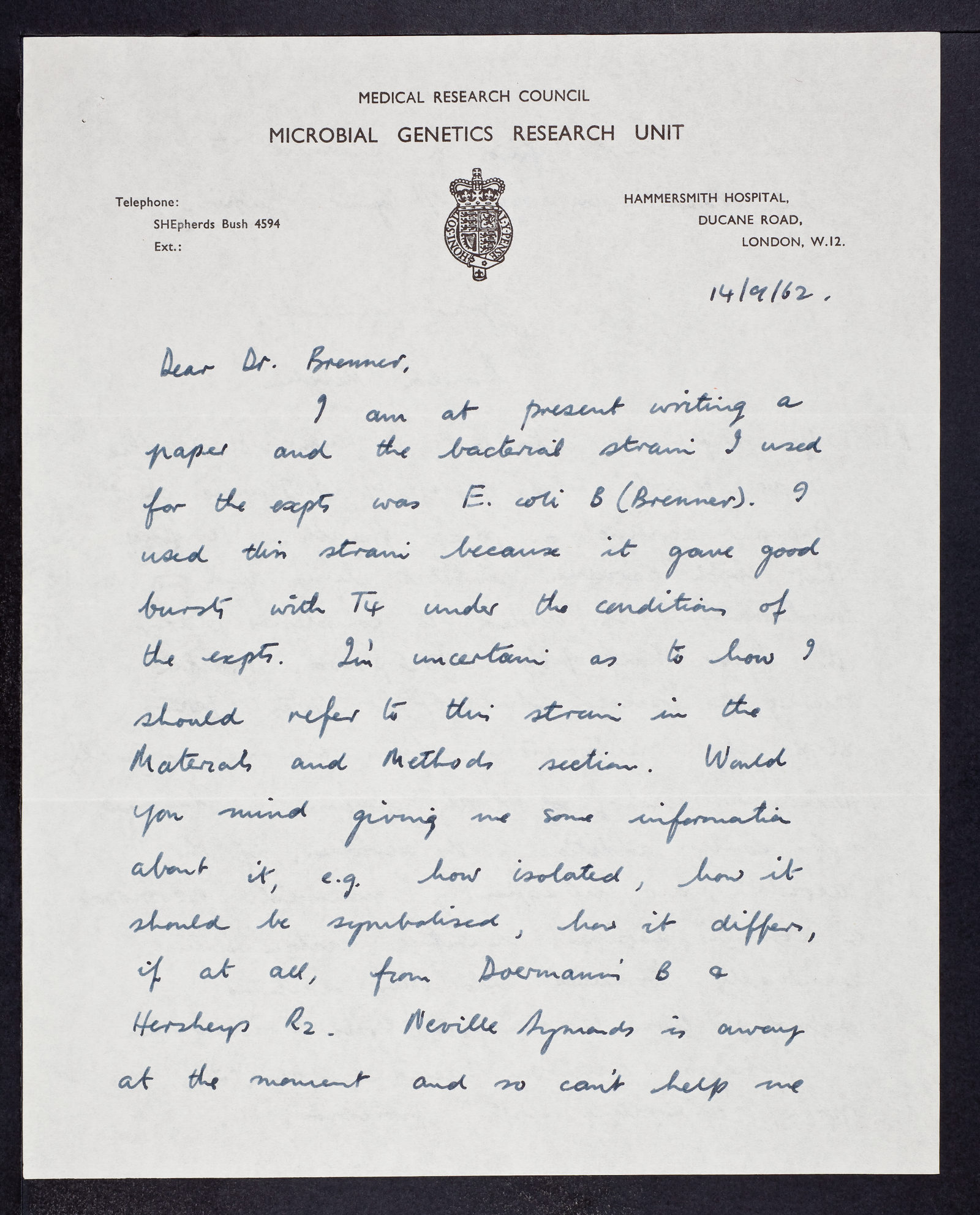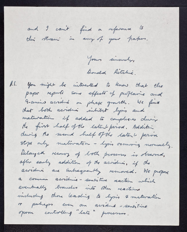 Handwritten letter from Donald Ritchie to Sydney Brenner