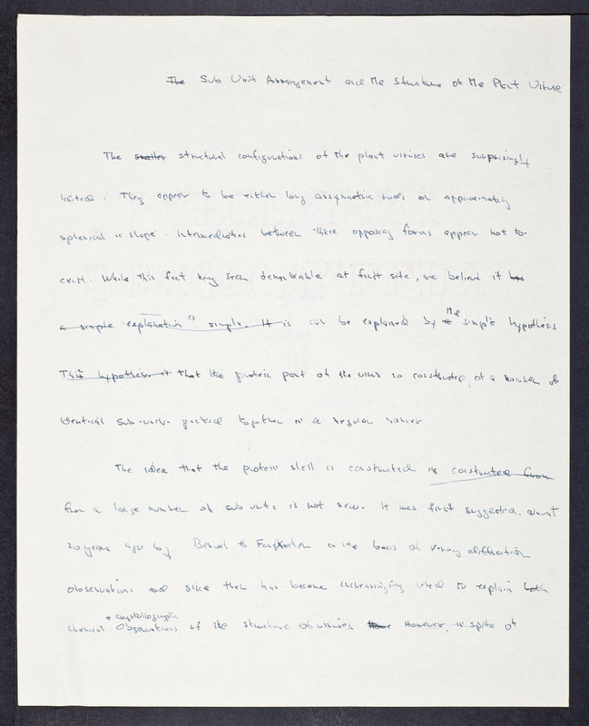 Sub Unit Arrangement and the Shape of Plant Viruses, Crick and Watson (preliminary versions)