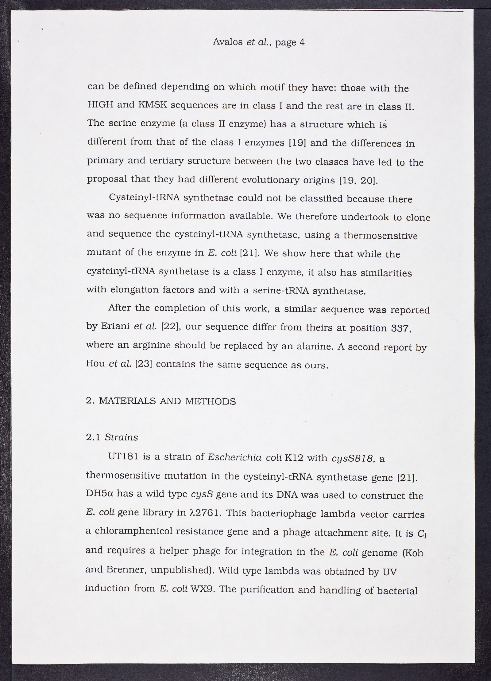 Cysteinyl-tRNA Synthetase is a Direct Descendant of the First Aminoacyl-tRNA Synthetase - Avalos, Corrochano, Brenner - FEBS Letters