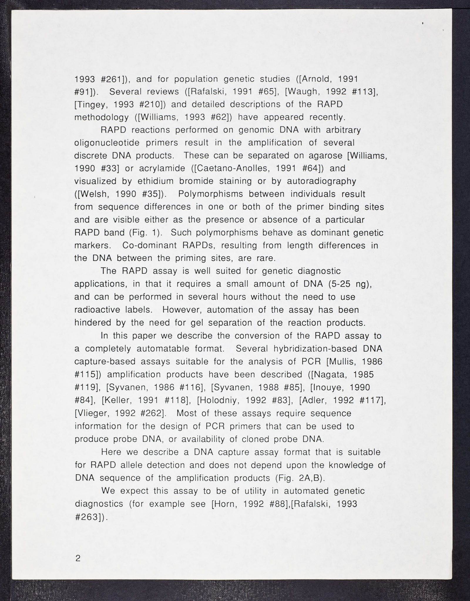 DNA Capture Assay for the Analysis of RAPD Alleles - Biddle, et al