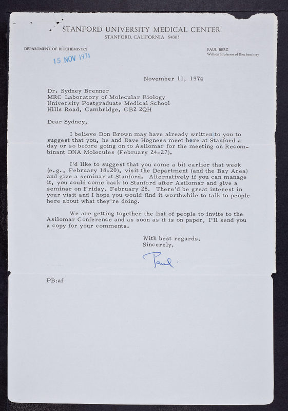 Item SB/1/2/43: Asilomar Meeting on Biohazards (1974)