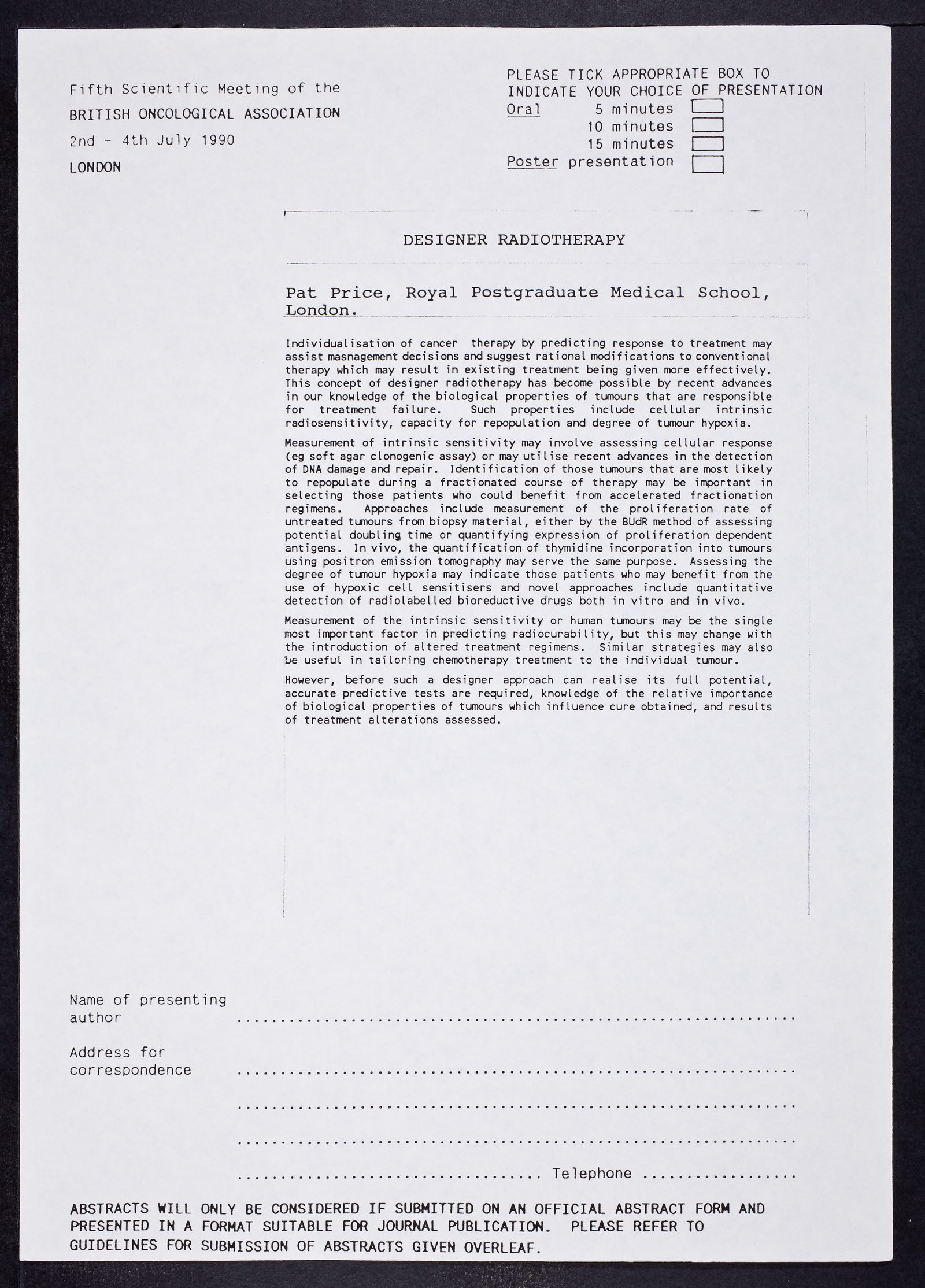 Item SB/1/2/102: British Oncological Association (Lecture) (1989-1990)