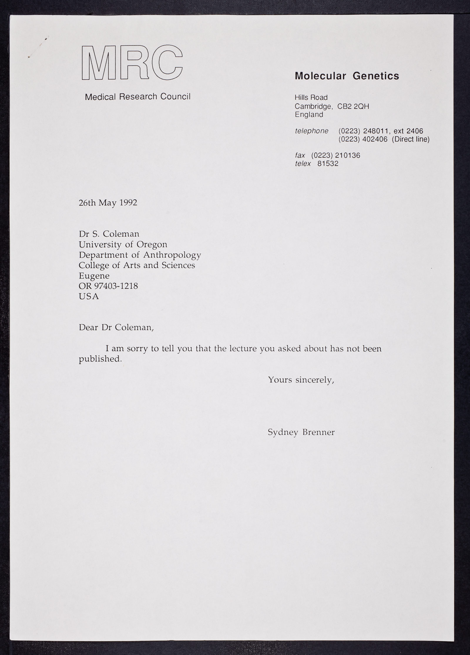 Collection SB: Sydney Brenner Collection (1927-2010)