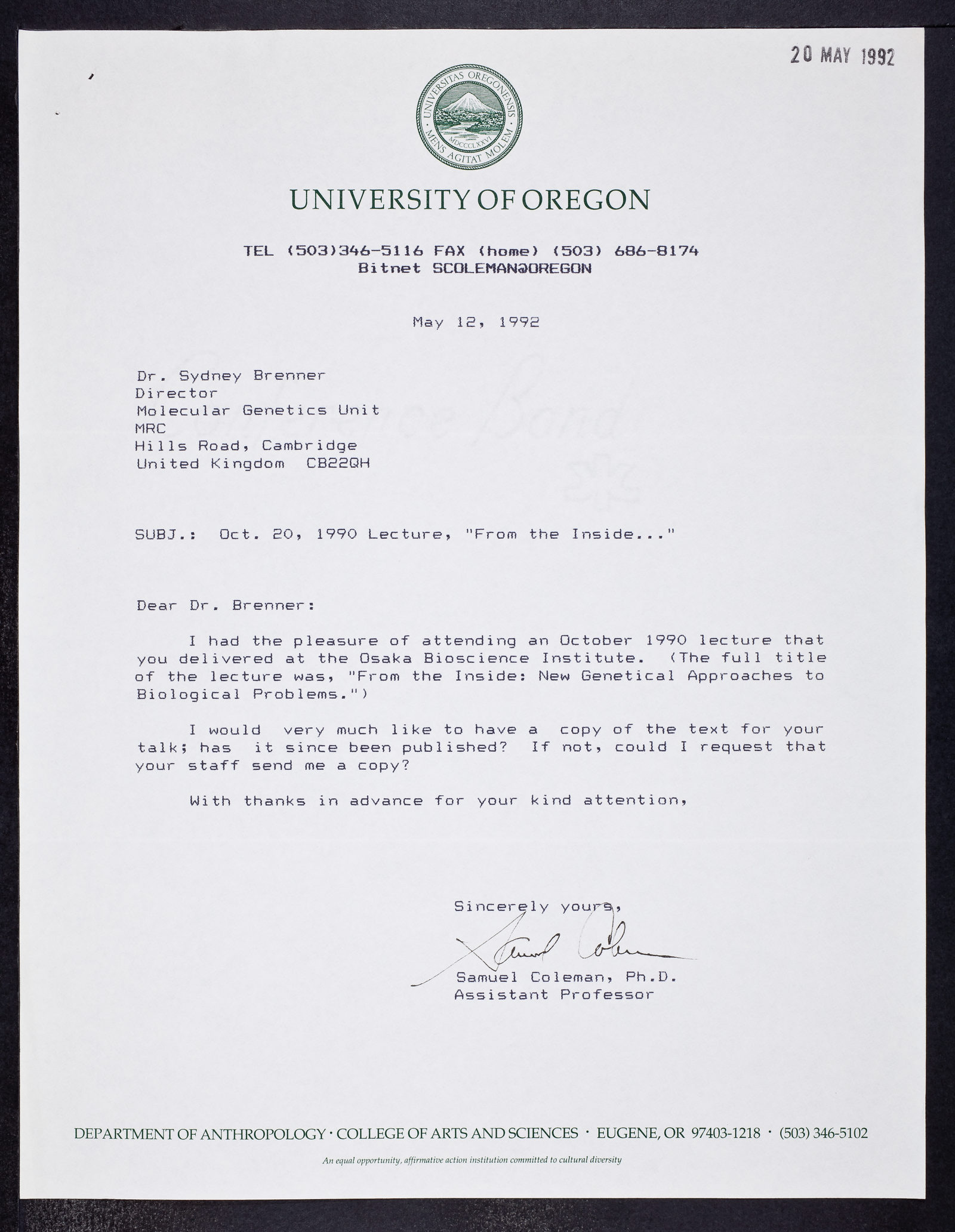 Collection SB: Sydney Brenner Collection (1927-2010)