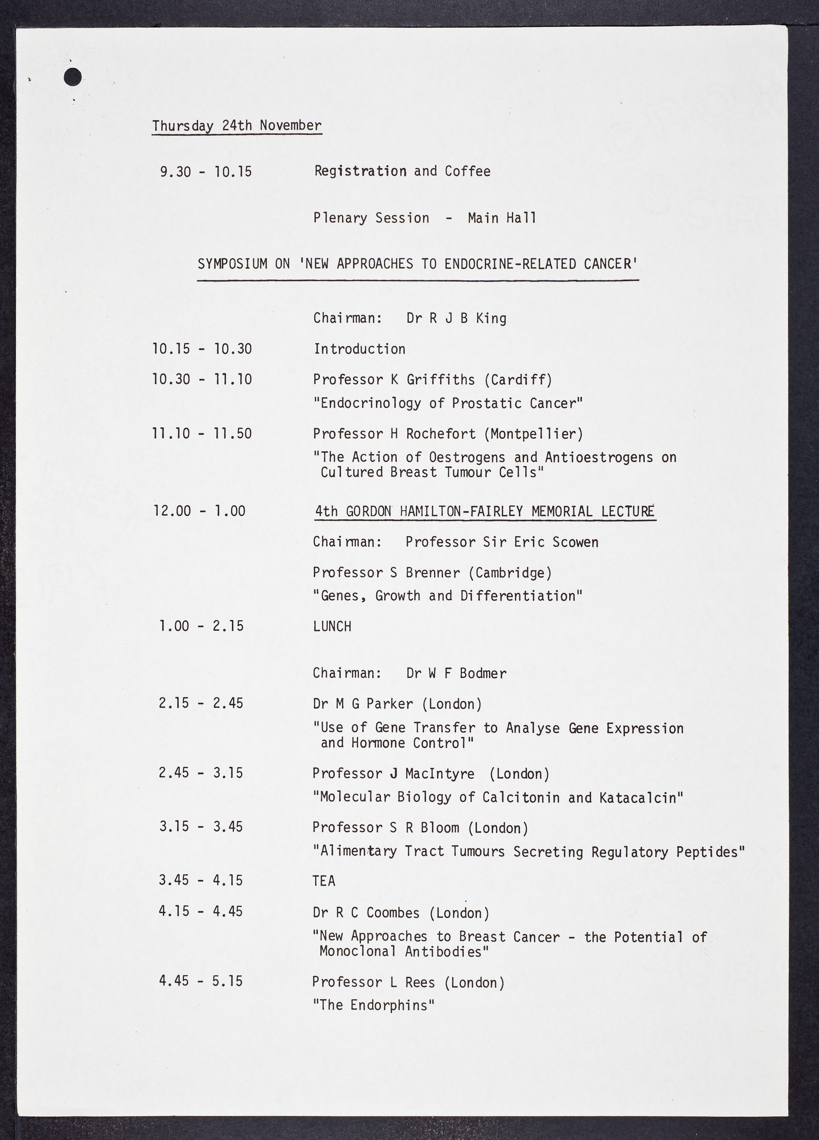 Item SB/1/2/137: Cancer Research Campaign - Gordon Hamilton Lecture (1983)