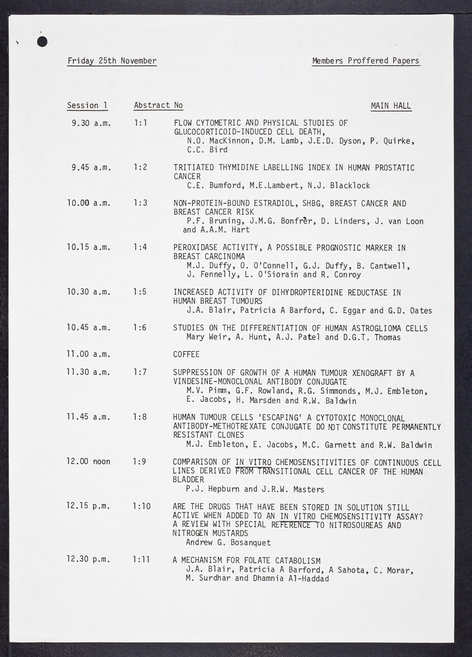 Program for the British Association for Cancer Research/ Imperial Cancer Reseach Fund Joint Winter Meeting