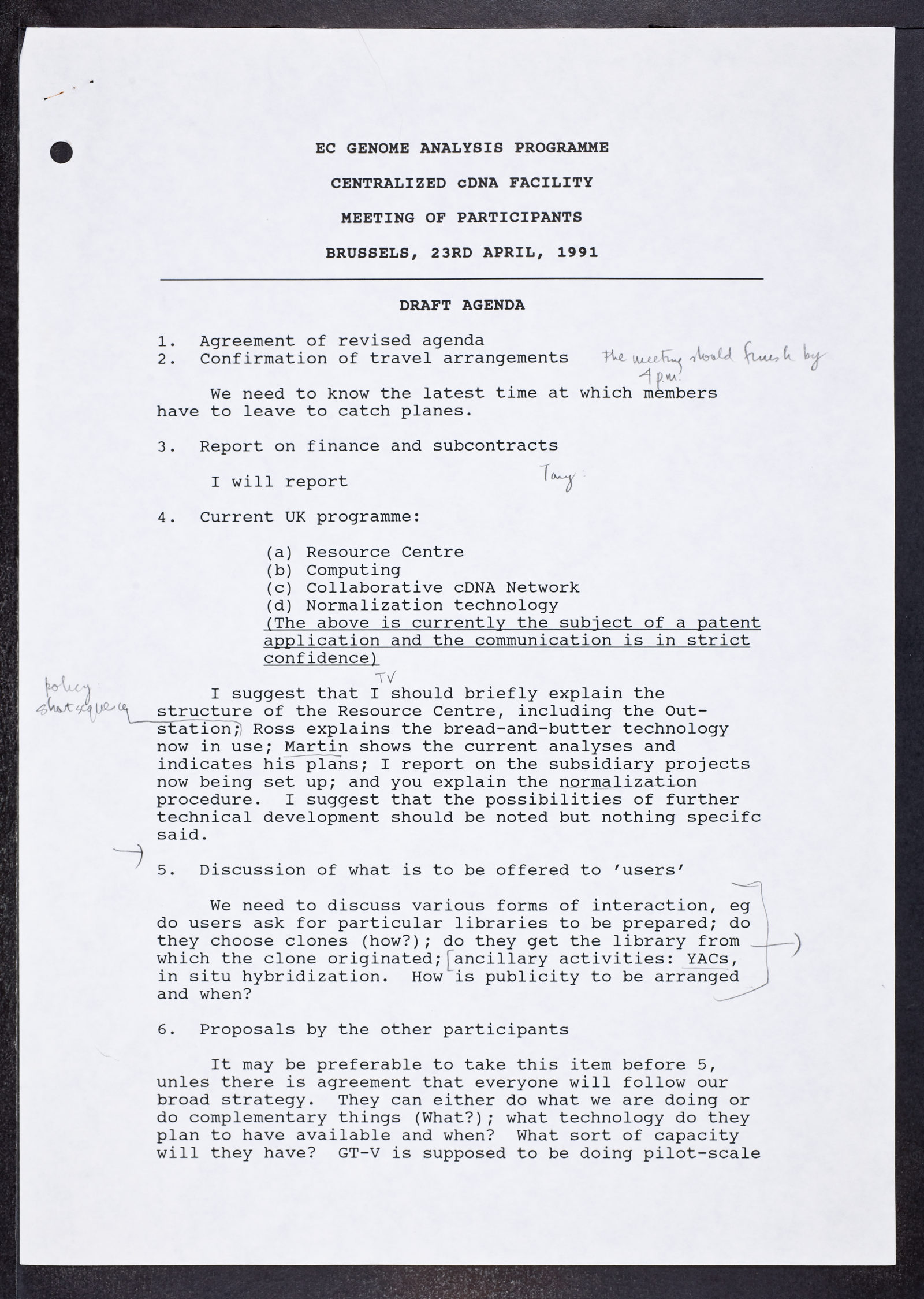 European Consortium - Genome Analysis Programme (cDNA) (Includes handwritten notes by Brenner)