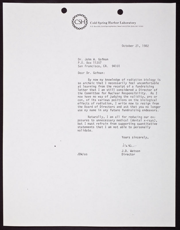 Letter from James D. Watson to John W. Gofman