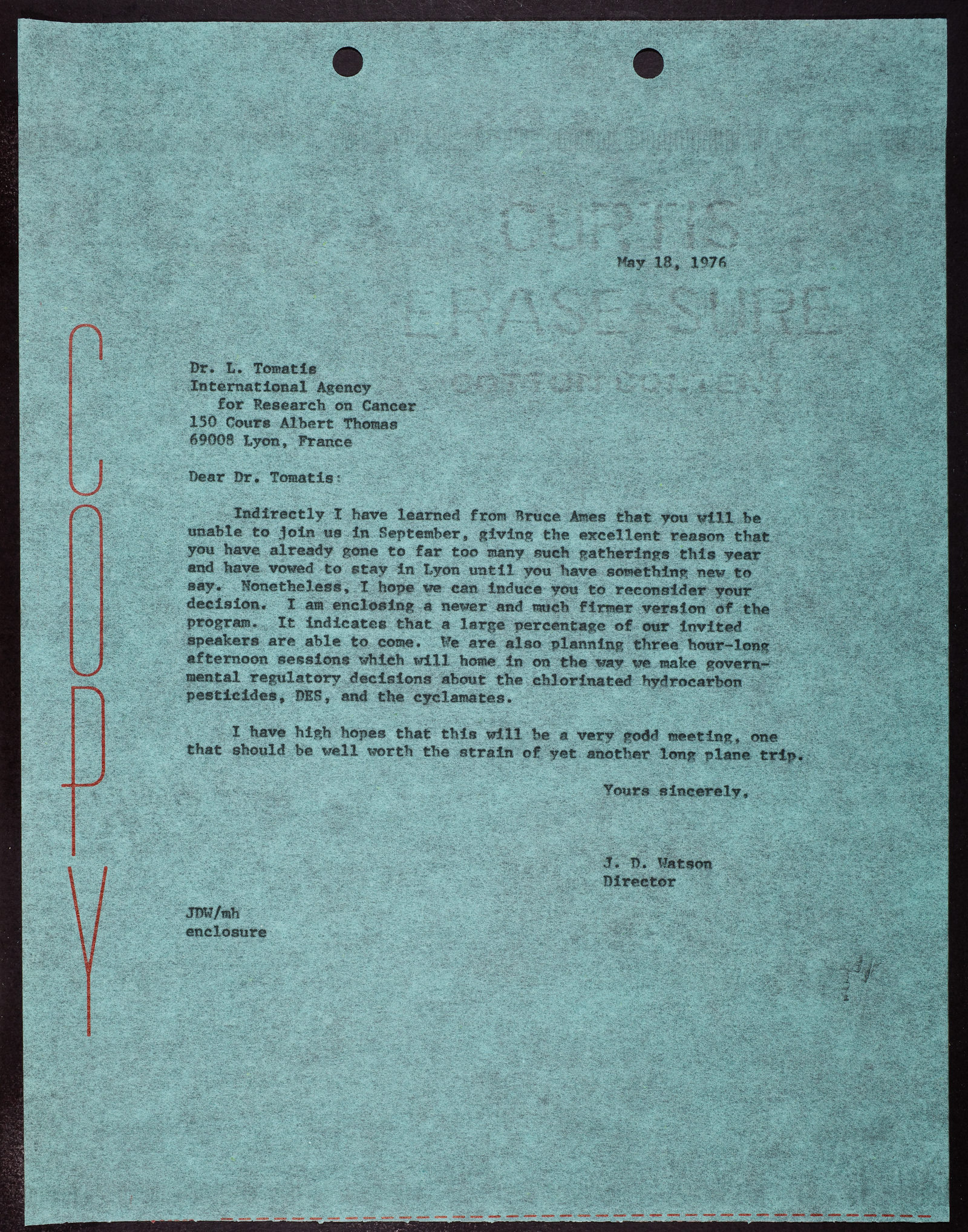 Letter from James D. Watson to L. Tomatis