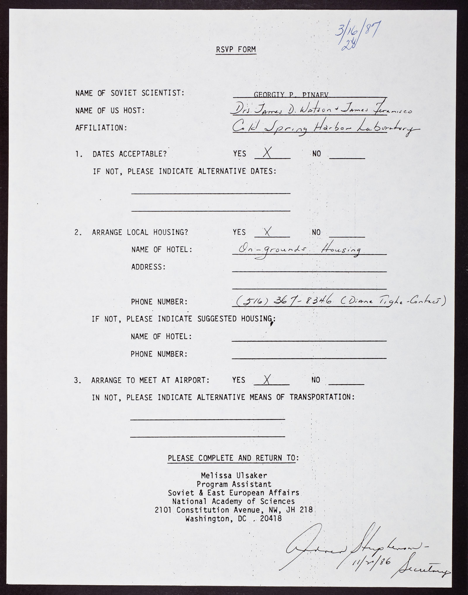 RSVP Form for the Visit of Dr. Georgiy Pinaev