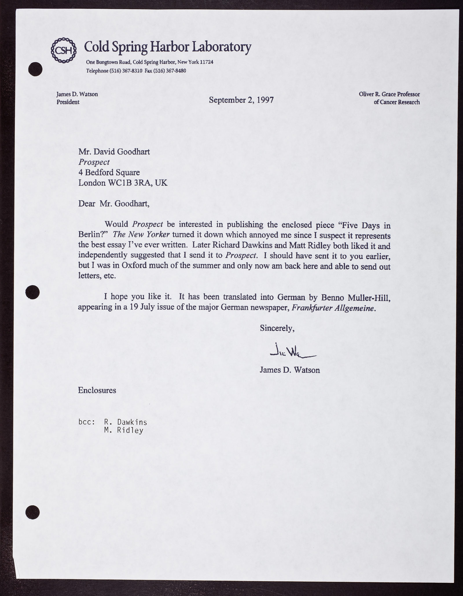 Regarding essay by Watson entitled "Five Days in Berlin"